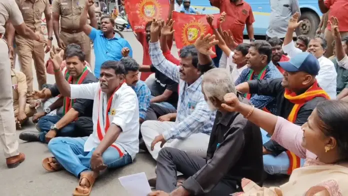 இந்நிலையில் கோனியம்மன் கோவிலில் இருந்து மாநகராட்சி அலுவலகம் நோக்கி வந்த 40க்கும் மேற்பட்டவர்கள் திடீரென சாலையில் அமர்ந்து முழக்கங்களை எழுப்பியதால் காவல்துறையினர் அவர்களை கைது செய்து அழைத்துச் சென்றனர். இதனால் பகுதியில் பரபரப்பான சூழல் நிலவியது.