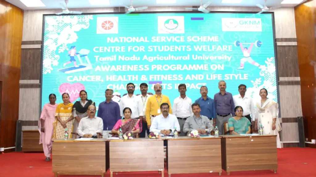 தமிழ்நாடு வேளாண்மைப் பல்கலைக்கழகம் மாணவர் நல மையம் மற்றும் தேசிய நாட்டு நலப்பணித் திட்டம் இணைந்து, கோயம்புத்தூர் GKNM மருத்துவமனையின் ஒத்துழைப்புடன் தமிழ்நாடு வேளாண்மை பல்கலைக்கழகத்தில் அமைந்துள்ள அண்ணா அரங்கில் “புற்றுநோய், ஆரோக்கியம் & உடற்பயிற்சி மற்றும் வாழ்க்கைமுறை மாற்றங்கள் அதன் தாக்கம்” என்ற தலைப்பில் விழிப்புணர்வு நிகழ்ச்சியை நடத்தியது.