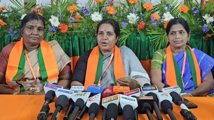 கோவை எட்டிமடை பகுதியில் பாஜக சார்பில் மாநில மகளிர் அணி பயிற்சி முகாம் இரண்டு தினங்கள் நடைபெறுகிறது. இந்நிகழ்வில் இன்று பாஜக தேசிய மகளிர் அணி தலைவர் வானதி சீனிவாசன் கலந்துகொண்டு மகளிர் அணி சார்பில் கட்சியின் வளர்ச்சிக்கு என்ன என்ன செய்ய வேண்டும் என்பது பற்றி எடுத்துரைத்தார். மேலும் மகளிர் அணியில் சிறப்பாக செயல்படும் பெண்களுக்கு பரிசுகளை வழங்கினார்.
