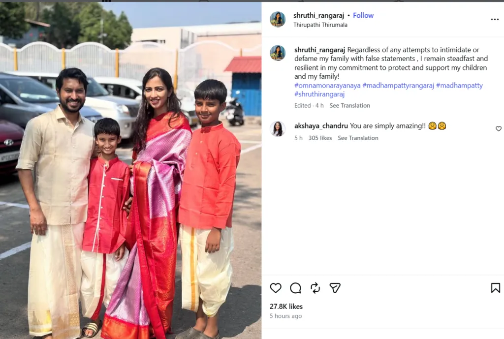 இதற்கு பதிலளித்த ஸ்ருதி, தனது குடும்பத்தை தவறான குற்றச்சாட்டுகளிலிருந்து காப்பாற்றுவேன் என கடுமையாக பதிவிட்டார்.