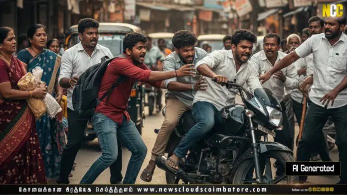 கோவை: கோவையில் கல்லூரி மாணவர்களிடம் வழிப்பறி செய்த சிறுவன் உள்பட 2 பேரை பிடித்து போலீசில் ஒப்படைத்த பொதுமக்கள்.