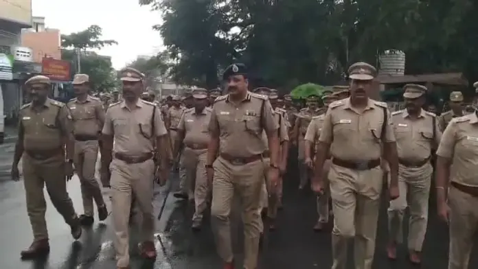 கோவை: கோவையில் கொட்டும் மழையிலும் மாநகர காவல் ஆணையர் தலைமையில், அணிவகுப்பு மேற்கொள்ளப்பட்டது.