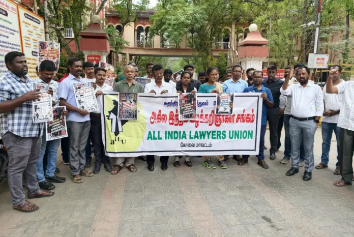 இந்நிலையில் கோவையில் ஒருங்கிணைந்த நீதிமன்ற வளாகம் முன்பு அகில இந்திய வழக்கறிஞர்கள் சங்கம் சார்பில் அமெரிக்க அதிபர் ட்ரம்பின் நடவடிக்கையை கண்டித்து கண்டன ஆர்ப்பாட்டம் நடைபெற்றது. இதில் கலந்து கொண்ட வழக்கறிஞர்கள் அமெரிக்காவின் நடவடிக்கையை கண்டித்தும் ட்ரம்பை கண்டித்தும் பதாகைகளை ஏந்தி முழக்கங்களை எழுப்பினர்.