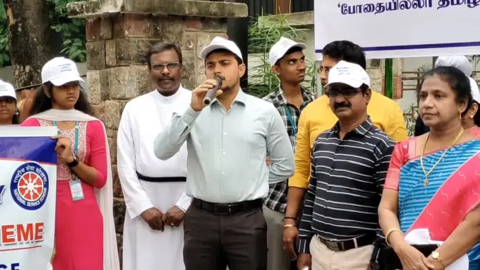 சர்வதேச போதை பொருள் ஒழிப்பு தினம் கடைபிடிக்கப்படுவதை முன்னிட்டு தமிழகம் முழுவதும் போதையில்லா தமிழ்நாடு- 2025 விழிப்புணர்வு நிகழ்ச்சிகள் நடத்தப்பட்டு வருகிறது. அதன் ஒரு பகுதியாக கோவை மாவட்டத்தில் மதுவிலக்கு மற்றும் ஆயத்தீர்வை துறை சார்பில் கல்லூரி மாணவர்களின் விழிப்புணர்வு பேரணி நடைபெற்றது.